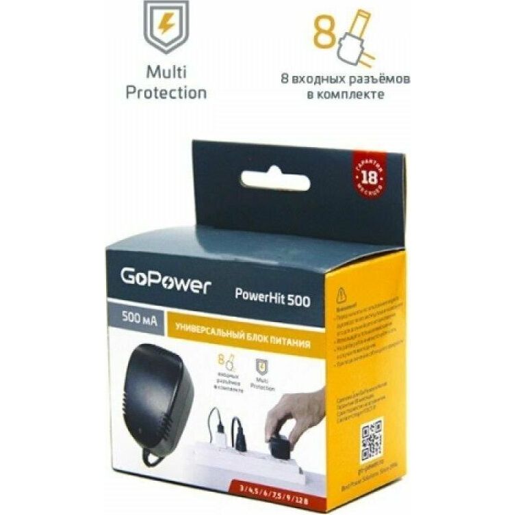 Универсальный блок питания. Напряжение: 3,0 / 4,5/ 6,0 / 7,5 / 9,0 / 12,0 В. Тип электросхемы: трансформаторный. Напряжение: нестабилизированное. Полярность: на выбор пользователя. Максимальный ток: 500 мА. Штекеры: 8 штук 5,0 х 2,1 мм, 5,5 х 2,5 мм, 4,0 х 1,7 мм, 2,35 х 0,75 мм, 3,5 х 1,35 мм, 5,5 х 1,5 мм, 2,5/12 мм, 3,5/15 мм. Технология «Multi Protection»: защита от короткого замыкания и перегрузок. Светодиодная индикация.