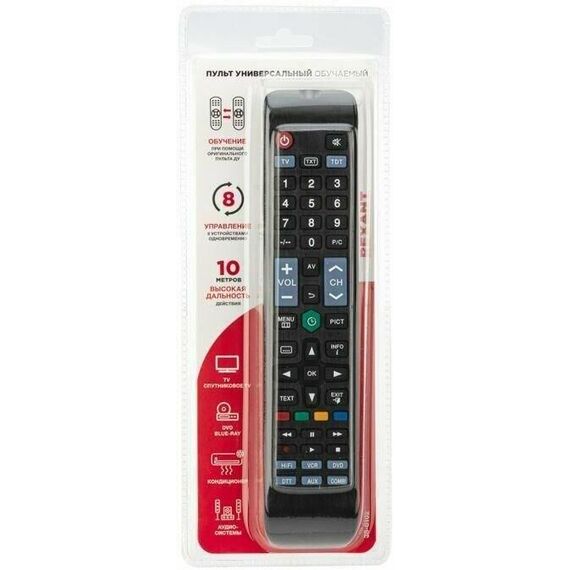 Пульт универсальный на 8 устройств REXANT – приспособление, при помощи которого можно дистанционно управлять сразу несколькими устройствами, например, телевизором, аудиосистемой, приставкой и т. д. Это очень удобно, так как один пульт заменяет несколько, экономит время и избавляет от завалов лишней техники. Подходит для всех телевизоров современных брендов: SAMSUNG, SONY, LG, PHILIPS и др. Пульт поддерживает все необходимые функции, обеспечивающие максимально полное и удобное управление восемью устройствами одновременно. Имеет низкое энергопотребление, удобен и прост в настройке. Благодаря универсальному сочетанию 8 в 1 – вам не придется покупать разные пульты управления для каждого устройства отдельно. Размер пульта: 23х5х2.5 см Тип питания: батарейки 2 х ААА (в комплект не входят)