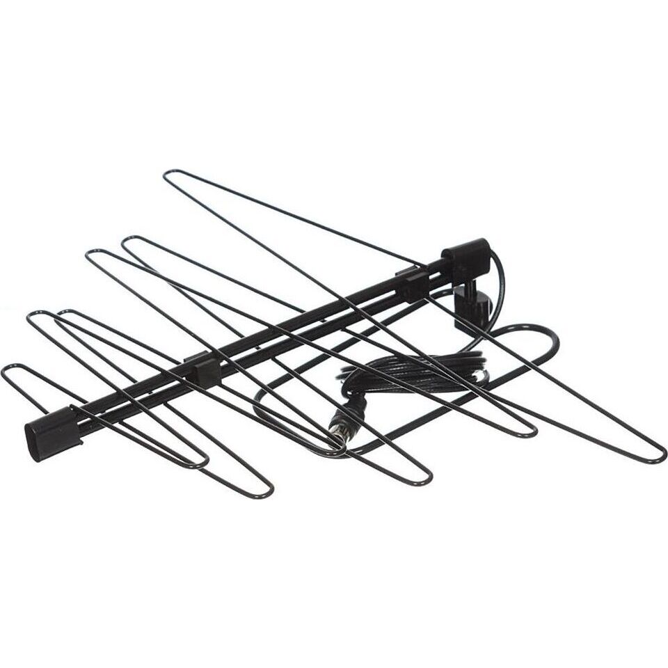 Антенна комнатная, принимаемые каналы: 21 -60, диапазон рабочих частот: 470 - 790 МГц, коэффициент усиления 4 дБ, помехозащищенность не менее 8 дБ, входное сопротивление 75 Ом.