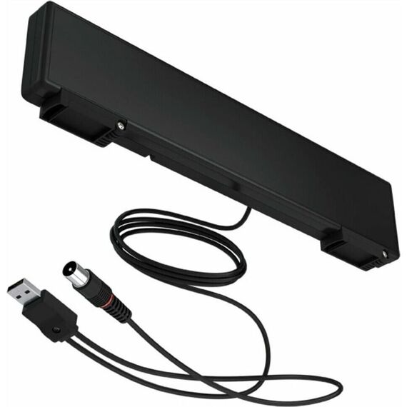 Комнатная цифровая активная антенна, питание от USB-инжектора, коэффициент усиления 35дБи, волновое сопротивление 75 Ом, длина кабеля 1,2 м, размер 315х75х32 мм, масса 0,23 кг.