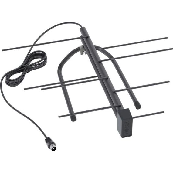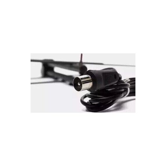 Телевизионная комнатная антенна, пассивная, для приема аналогового и цифрового телевидения, коэффициент усиления, макс., дБи, 21-69 канал: 6, волновое сопротивление, Ом: 75, расстояние до телепередатчика, не более, км: 5, размеры в сборе, мм: 270х350х107.