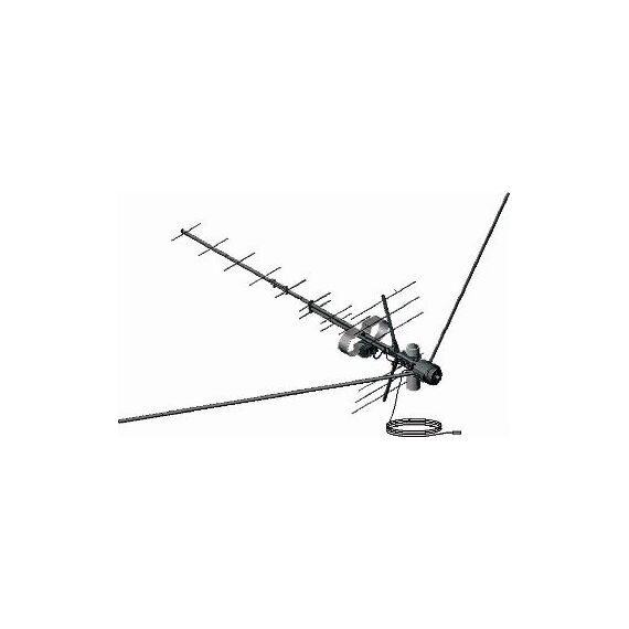 Антенна наружна, всеволновая (МВ-ДМВ) , напряжение питания - 12V, с двумя усилителями, оснащена отражателями сигнала, принимаемые каналы: 1-5/6-12/21-60; усиление: 19,5/24,5/31дБ, осуществляет прием до 80 км от ретранслятора.