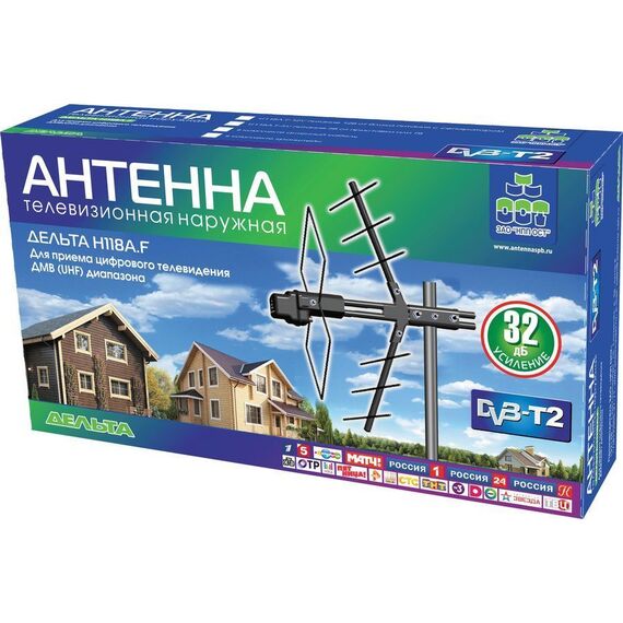 Антенна наружная ДЕЛЬТА Н118АF 5V б/к (активная, DVB-T2, без б/п, 28-32 дБ, коробка)