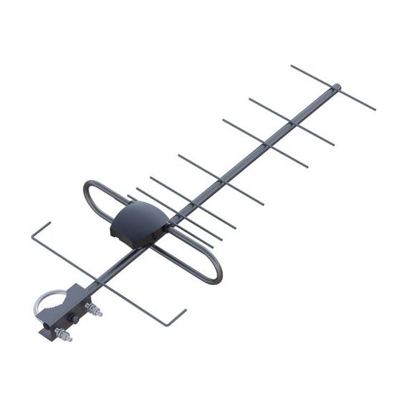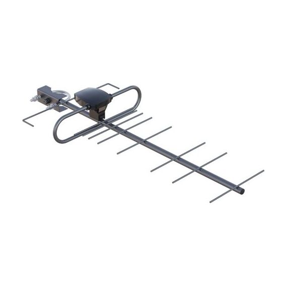 ТВ антенна диапазона ДМВ, Коэффициент усиления макс.12/35 дБи, 21-69 канал, питанием от цифровой приставки, волновое сопротивление 75 Ом, размеры в сборе (без узла крепления), мм: 605х255х80мм, масса 0,54 кг.
