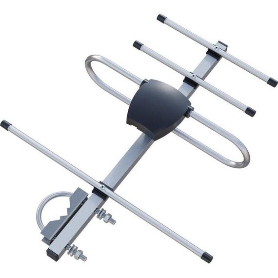 Антенна наружная, активная, четырехэлементная , диапазона ДМВ/DVB-T2, для приема сигналов цифрового телевидения DVB-T2, питание усилителя от цифровой приставки, коэффициент усиления - 27 Дб, поставляется в пакете.
