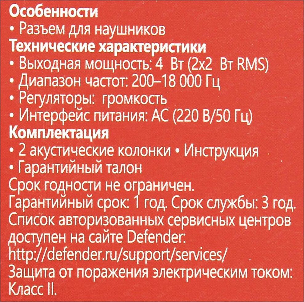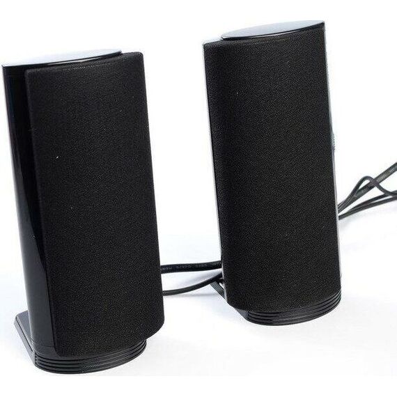 Акустическая 2.0 система, 4 Вт, диапазон частот 200 - 18000 Гц,, размер динамиков 2х2,5 "0, тип интерфейса - 3,5-мм джек, материал корпуса - пластик, длина кабеля 1.35 м.