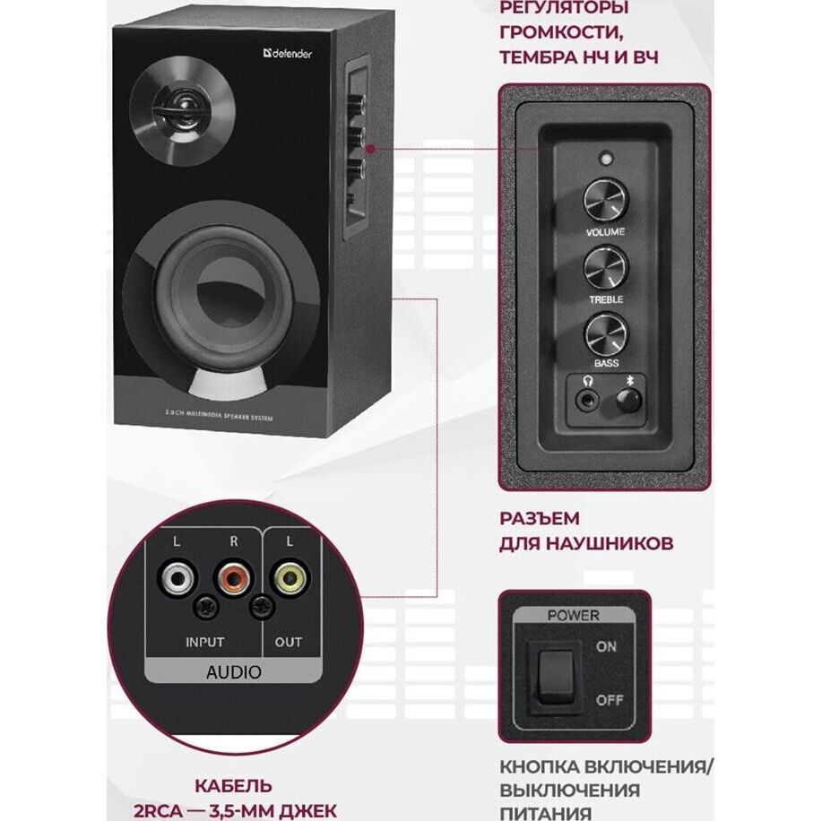 Акустическая система, Bluetooth, мощность (RMS) - 40 Вт, мощность сателлитов (RMS) - 2х20 Вт, Диапазон частот 90–20000 Гц, сопротивление динамиков - 4 Ом, аудиовходы - 2RCA-аудиовход, тип интерфейса - 3,5-мм джек, деревянный корпус, регуляторы громкости и тембра, магнитная экранировка.