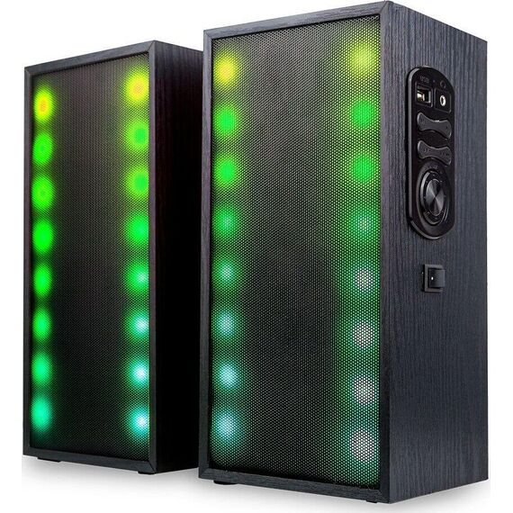 Максимальная выходная мощность 20 Вт Материал корпуса: дерево Динамики 2* 76 мм Питание: 220В Дополнительные функции: Bluetooth, Mp3-плеер (USB), Радио. Подсветку можно отключить