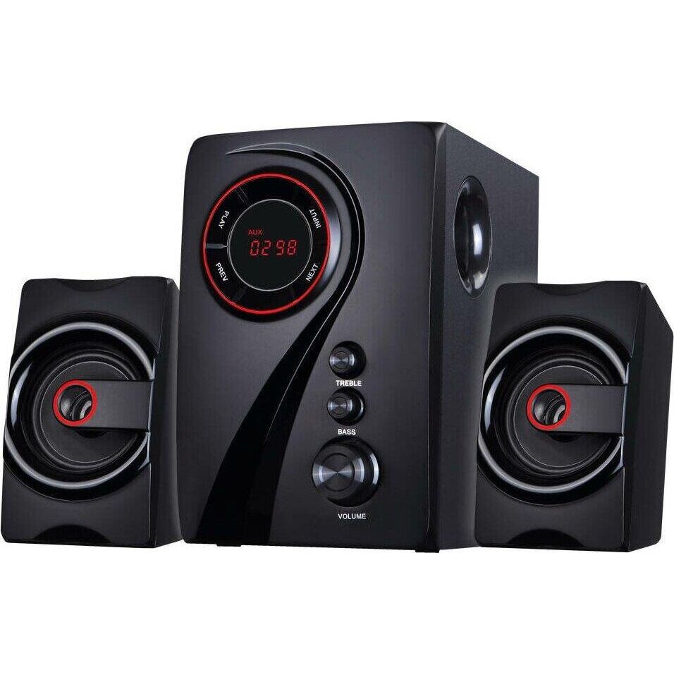 Мультимедийная акустическая система 2.1 с Bluetooth(v2.1), выходная мощность 40Вт (20Вт + 2х10Вт), аудиоплеер USB-flash, SD-card, FM-радио, пульт ДУ - 21 кнопка, стерео вход (2RCA), эквалайзер (обычный, джаз, рок, поп, классика), режимы MUTE, STANDBY, сабвуфер - дерево(MDF). Чувствительность - >68дБ. Диапазон частот - 40-20000Гц. Входные интерфейсы - USB 2.0, Стерео аудио (RCA). Выходные интерфейсы - Стерео аудио (RCA). Материал корпуса - МДФ, ABS пластик.