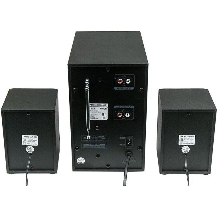 Активная акустическая система 2.1. Поддержка карт SD (Secure Digital), USB, FM. Мощность RMS (Вт): 20 (10+5+5). Усилитель: встроенный. Компоненты: сабвуфер, два сателлита, пульт ДУ. Входы: стереовход (2RCA). Сабвуфер - 4". Частотный диапазон (Гц-Гц): от 20 Гц. Сопротивление (Ом): 4. Габаритные размеры (В*Ш*Г): 220*140*230 мм. Сателлиты - 3". Частотный диапазон (Гц-КГц): до 20 кГц. Сопротивление (Ом): 4. Габаритные размеры (В*Ш*Г): 140*98*100 мм. Корпус: MDF, 5 мм. Длина сетевого кабеля: 1,5 м. В комплекте инфракрасный пульт ДУ. Питание от литиевой батарейки CR2025.