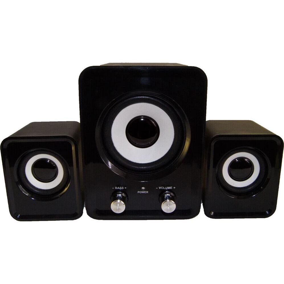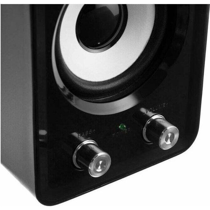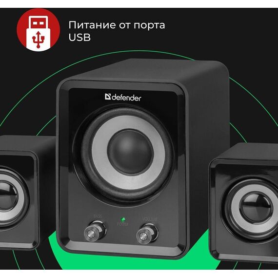 Суммарная выходная мощность (RMS) -16 Вт, мощность сабвуфера (RMS) -10 Вт, мощность сателлитов (RMS) -2х3 Вт, диапазон частот 50–20000 Гц, диапазон частот сабвуфера - 50–200 Гц, диапазон частот сателлитов -200–20000 Гц, аудиовходы- 3,5-мм джек.