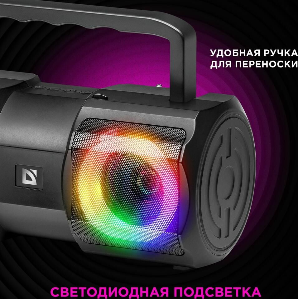 Тип акустической системы: активная Серия: для дома Суммарная выходная мощность (RMS): 20 Вт Соотношение сигнал/шум: 85 дБ Диапазон частот: 85–20000 Гц Звуковая схема: стерео, 2.0 Акустическое оформление: фазоинверторного типа Количество полос: 1 Широкополосный динамик: 2 х 2.5 " Сопротивление динамиков: 4 Ом Материал диффузора динамиков: целлюлоза Расположение порта фазоинвертора: тыл Аудиовходы: AUX-аудиовход Интерфейс беспроводной связи: Bluetooth 5.1 Дальность действия: 10 м True Wireless Stereo (TWS): нет Функция Hands free: нет Дисплей: нет Пульт ДУ: нет Совместимые ОС: без ограничений Подсветка: светодиодная Количество цветов подсветки: 6 Световые эффекты: есть Количество световых режимов: 4 Функция выключения подсветки: есть Тип разъема питания: Micro-USB Питание: от USB, 5 В , Li-Ion аккумулятор Емкость аккумулятора: 2400 мА·ч Напряжение аккумулятора: 3.7 В Тип элементов питания: форм-фактор 18650, 3.7В, 1200мАч - 2 шт (параллельное соединение)