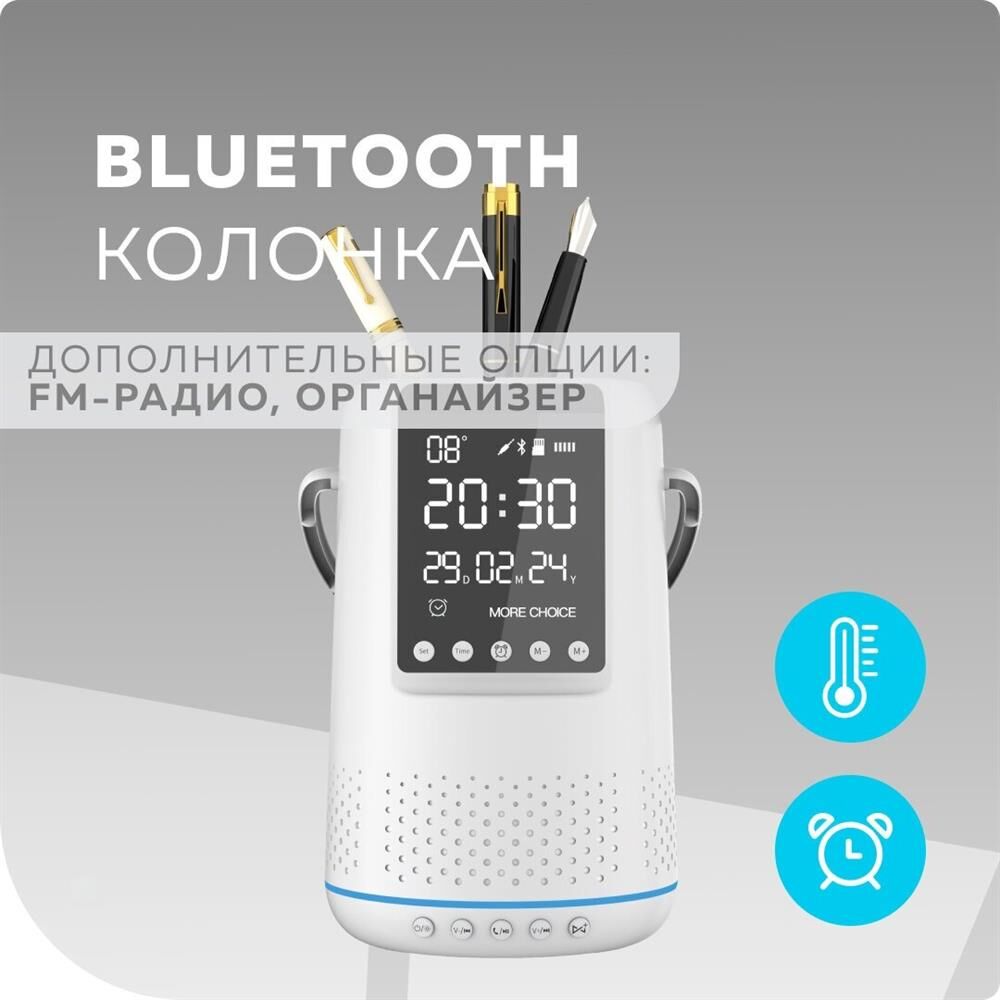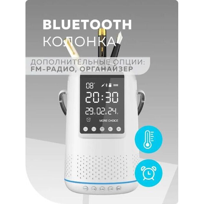 Колонка многофункциональная . Bluetooth 5.2, мощность сабвуфера (Вт) 5 Вт, расположение регуляторов звука на передней панели, емкость аккумулятора - 1500mAh, воспроизводимая частота - 75 Гц - 1000 Гц, импеданс 32 Ом, колонка объединяет в себе высококачественное звучание, беспроводную связь и удобную организацию, габариты (ДхВхШ) см - 11х16х11.