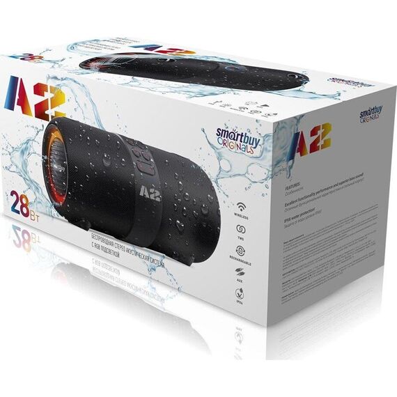 Макс.выходная мощность 28 Вт, Мощность каналов 2 x 14 Вт, Интерфейс соединения Bluetooth 5.0 / MP3 (USB)/AUX, Размер динамиков 2 х 76 мм, питание Type-C / 1800 мАч / 3,7В, материал корпуса пластик, металл