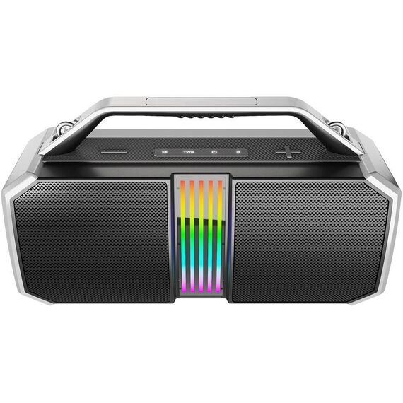 Архитектура 2.2 Макс.выходная мощность 60Вт Мощность каналов 2 х 20 Вт 2 x 10 Вт Интерфейс соединения Bluetooth 5.3 / MP3 (USB)/AUX Размер динамиков 2 х 76 мм 2 x 40 мм Диапазон воспроизводимых частот широкополосных динамиков 12 Гц - 20 кГц Питание USB / 2600 мАч / 7,4 В Материал корпуса металл / пластик