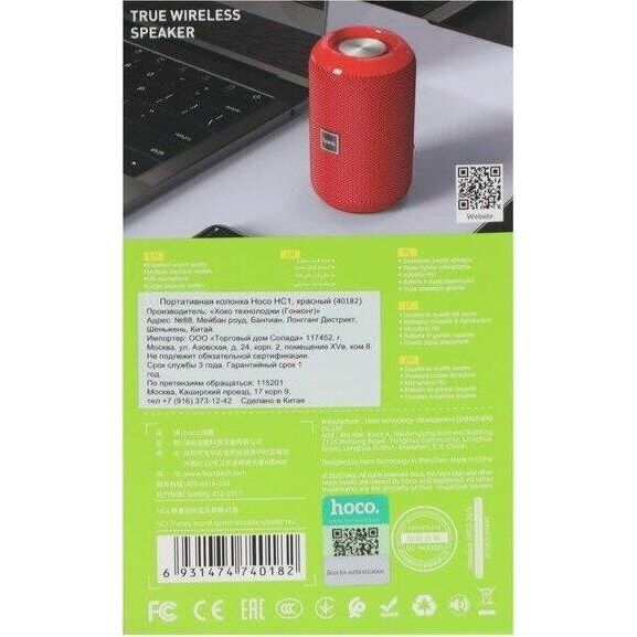 Колонка Bluetooth 5.0 5W 1200mAh Hoco HC1 Trendy sound sports Версия Bluetooth 5.0; Частотный диапазон 120 - 20000 Гц; Производитель Hoco; Мощность одного динамика 5 Вт; Количество динамиков 2; Чувствительность 80 дБ; Время работы 4 ч; Комплектация Колонка, инструкция, упаковка; Дополнительные опции Громкая связь, FM-радио, micro SD, USB, AUX; Страна производитель Китай; Вид колонки Bluetooth; Описание Колонка Hoco HC1 отличный выбор, так как она компактная. Поддержка работы до 4 часов, время ее зарядки около 2 часов. Имеет емкость батареи 1200mAh. Огромные функции к примеру BT,TWS,TF,AUX,USB режимов вопроизведения.