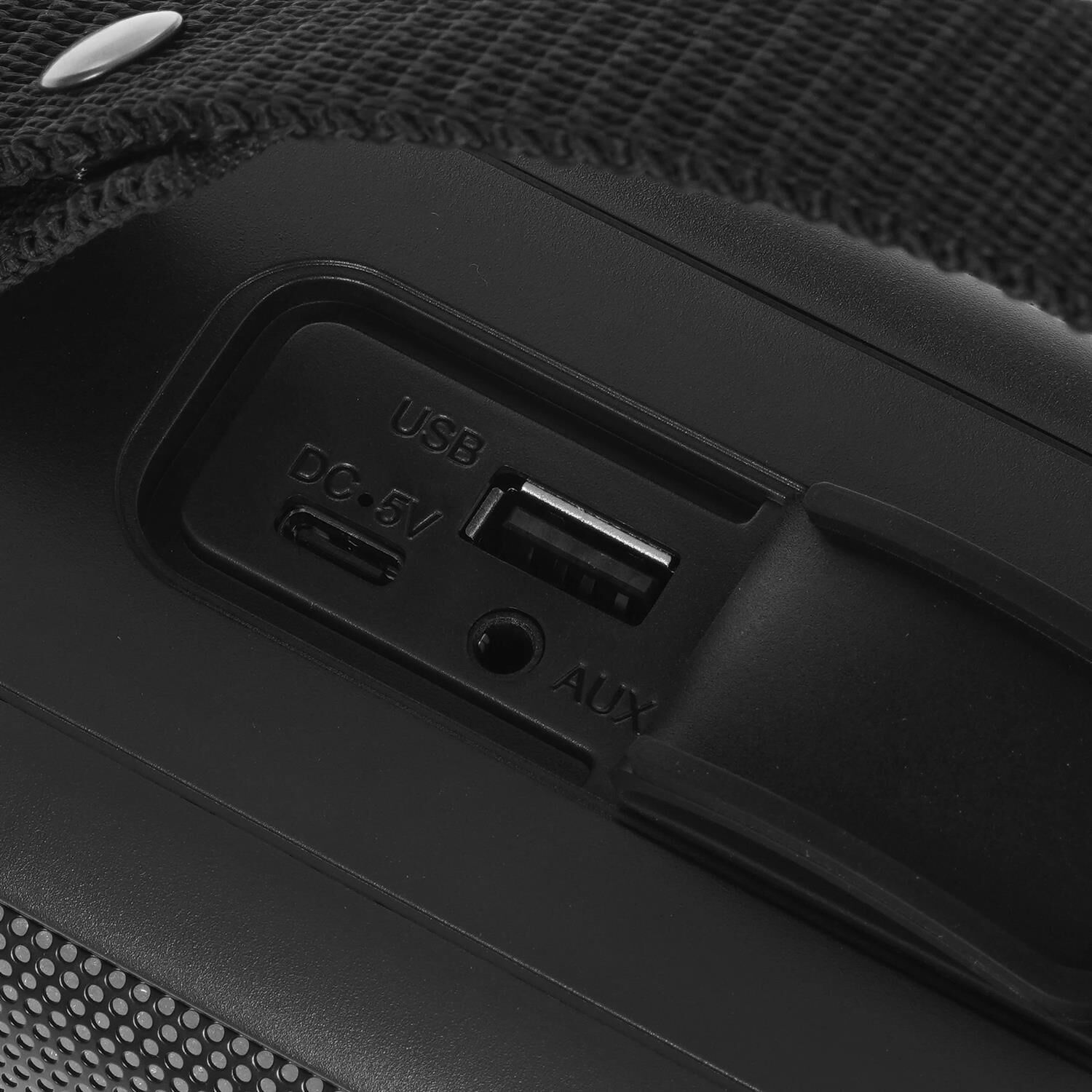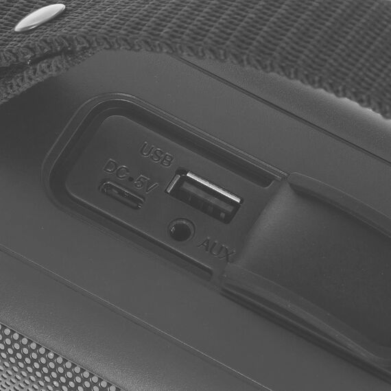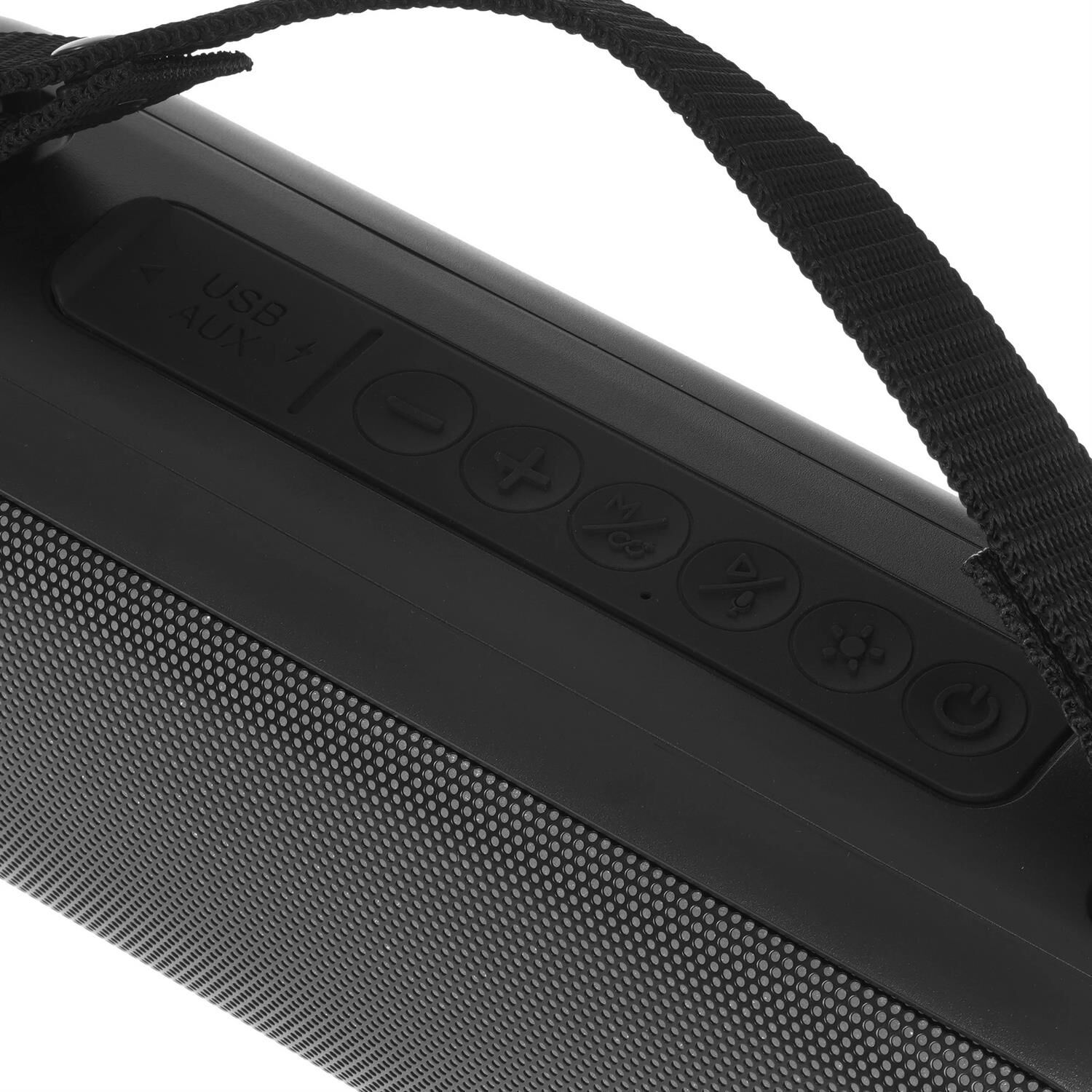 Звуковая схема: 2.0 Выходная мощность: 2*6 Вт Размер динамиков: 2*2" + 2 пассивных излучателя Bluetooth 5.1 (поддержка A2DP) FM-радио (87.5 – 108 МГц) Поддержка USB (до 32 ГБ) Воспроизведение формата MP3 Аудиовход AUX-in (3.5 мм jack) Функция Hands free Функция True Wireless Stereo Защита от брызг IPX4 Динамическая LED-подсветка: 3 режима Встроенная батарея: 1500 мАч Время работы от аккумулятора до 7 часов* Разъём 5 B для зарядки (Type-C) Цвет: черный Вес 0,74 кг Размер 255 *87* 110 мм