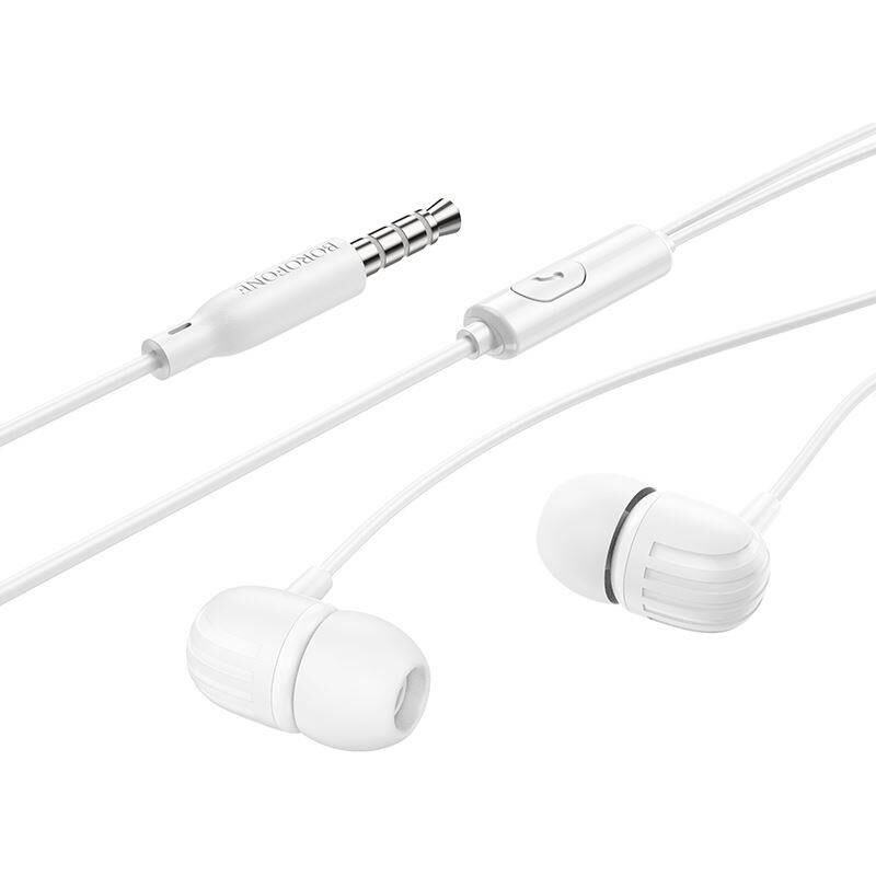 Наушники проводные Borofone с микрофоном оснащены динамиками с прекрасной акустической системой для качественного звука и поддерживают опцию управления звонками. Вставная конструкция обеспечивает необходимую шумоизоляцию, блокируя посторонние шумы. Гарнитура снабжена встроенным микрофоном – для общения не придётся держать в руках телефон. Вы можете использовать их с планшетом, телефоном и другими устройствами. Они маленькие и удобные, поэтому подходят как для повседневного использования, так и для того, чтобы брать их с собой в поездку. Разъем подключения AUX 3.5, длина кабеля 1.2м. Выполнены в двух цветах.