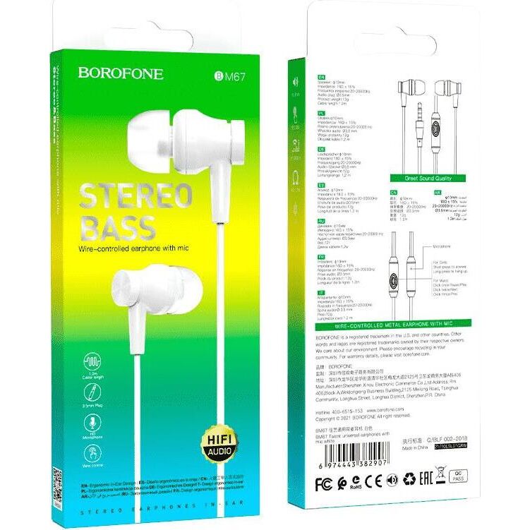 1. Материал:ABS + высокоэластичный TPE. 2. Динамик: 10 мм. 3. Аудиоразъем: 3,5 мм. 4. Длина кабеля наушников: 1,2 м; вес: 12 г. 5. Микрофон: контроллер с микрофоном. 6. Проводное управление: функциональное однокнопочное управление.пкой.