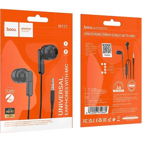 Наушники Hoco M121 это вакуумные наушники с AUX разъемом, предназначенные для комфортного прослушивания музыки и общения. Они оснащены встроенным микрофоном, что позволяет использовать их для звонков, однако не имеют регулятора громкости. Длина кабеля составляет 1.2 метра, что обеспечивает удобство использования в различных ситуациях.