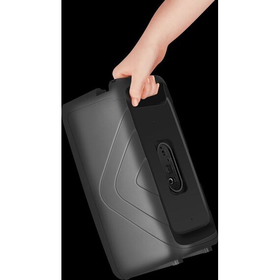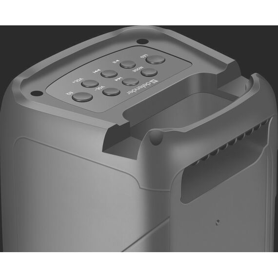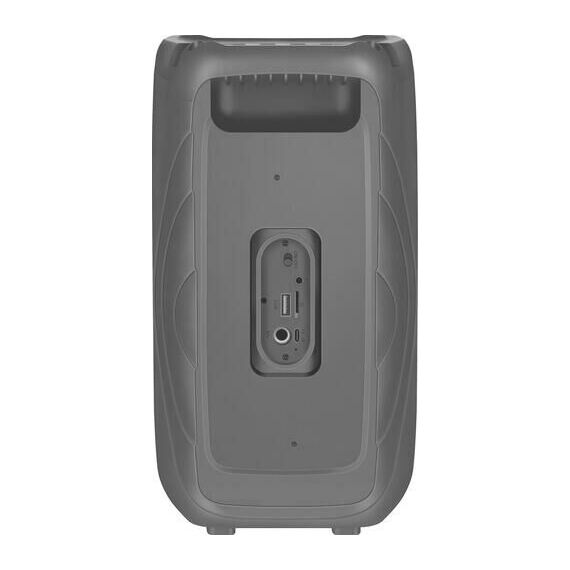 Акустическая Bluetooth система. Суммарная выходная мощность (RMS) 20 Вт Звуковая схема 2.0, моно Размер динамиков 2 x 3 " Акустическое оформление фазоинверторного типа Расположение порта фазоинвертора фронт True Wireless Stereo (TWS) есть Диапазон частот 150—18000 Гц Соотношение сигнал/шум 85 дБ Время работы от аккумулятора 2 час Время зарядки аккумулятора 5 час Интерфейс AUX-аудиовход Подсветка светодиодная Световые эффекты есть Интерфейс беспроводной связи Bluetooth 5.0 Дальность действия 10 м Питание от USB, 5 В , Li-Ion аккумулятор Емкость аккумулятора 2400 мА·ч Встроенный FM-приемник есть Радиочастотный диапазон МГц Поддержка карт памяти Micro-SD есть Максимальный поддерживаемый объем карты памяти MicroSD 32 ГБ Поддержка USB-флеш-накопителя есть Максимальный поддерживаемый объем памяти USB-флеш-накопителя 32 ГБ Форматы воспроизведения аудио MP3 Вход для микрофона 3,5-мм мини-джек Количество микрофонных входов Один Материал корпуса пластик Высота 292 мм Ширина 160 мм Глубина 150