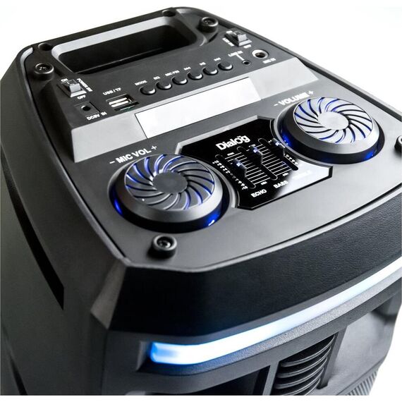 Портативная акустическая система c караоке, Bluetooth, microSD, USB и FM радио. Один микрофонный вход jack (6,35 мм, 1/4"), проводной микрофон в комплекте. Мощность системы RMS (Вт): 30. Сопротивление (Ом): 3. Частотный диапазон (Гц-КГц): 20-20. Гармонические искажения: <5%. Аккумулятор: встроенный Li-Ion аккумулятор 4400 мА*ч. Усилитель: встроенный. Динамик(и): НЧ 2*6,5" + ВЧ 1". Входы: Line in (миниджек 3.5 мм). Цветомузыка: Да, многоцветная цветомузыка. Полоса вверху, полоса внизу + динамическая подсветка обоих динамиков. Корпус: пластик. Размер корпуса (В*Ш*Г): 575*240*240 мм. Вес: 3,85 кг.