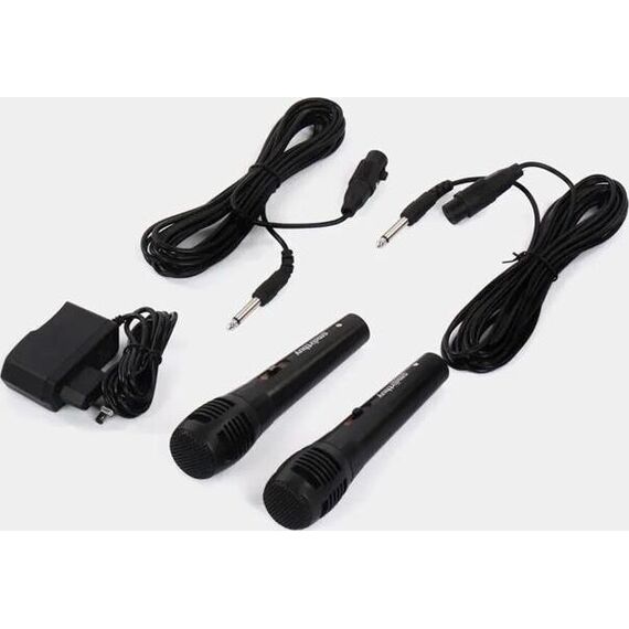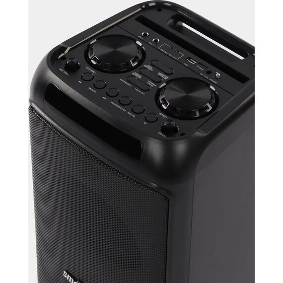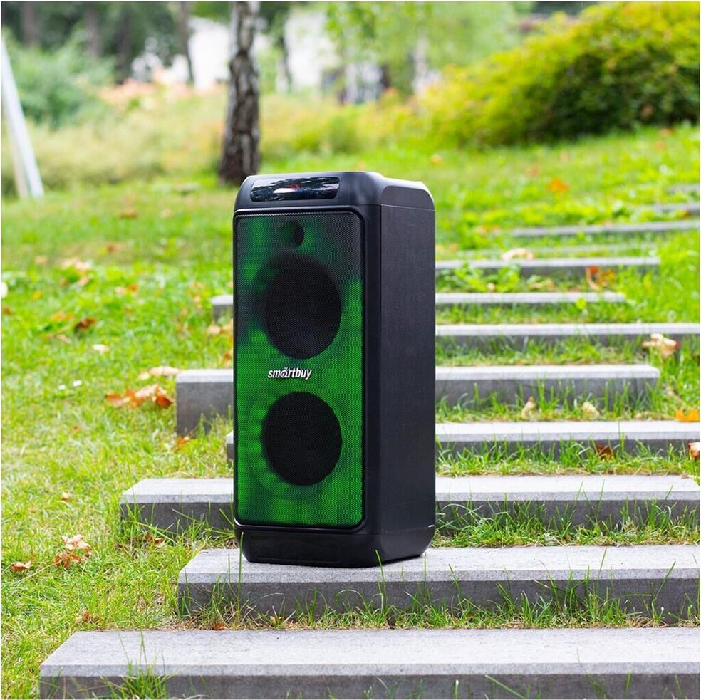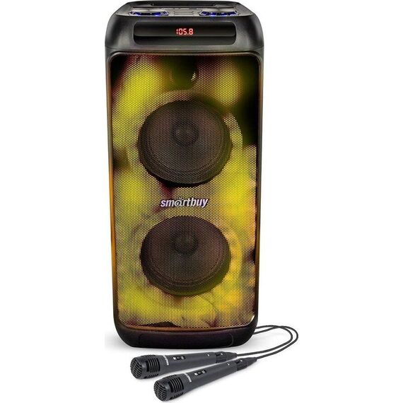 Акустическая система, Bluetooth 5.0, караоке колонка с двумя микрофонами, макс.выходная мощность - 60 Вт, питание - адаптер 13,5 В + 5000мАч / 11,1В, интерфейс соединения - Bluetooth 5.0 / FM / MP3 (SD/USB), размер динамиков - 2х165 мм, 1х38мм, диапазон воспроизводимых частот широкополосных динамиков - 80 Гц – 15 кГц , габаритные размеры (мм) - 300*292*680 , вес - 8,9 кг.