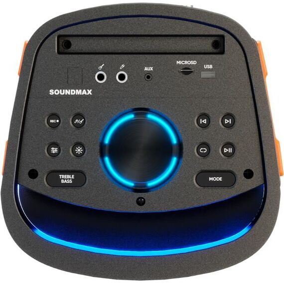 Общая номинальная музыкальная мощность: 120 Вт Пиковая музыкальная мощность: 1200 Вт LED дисплей Динамики: 2 x 6”+2 x 2.5” Поддержка Bluetooth 5.0 TWS функция Цифровой FM-тюнер (87.5-108 МГц) Воспроизведение с USB 2.0 и TF-карты Вход для микрофона/гитары (6.35 мм jack) Вход AUX (3.5 мм jack) Выход RCA Функция караоке Поддерживаемые аудио-форматы: MP3, WMA, FLAC Встроенный свинцово-кислотный аккумулятор: 12 В/5.5 А Время работы от аккумулятора до 8 часов* Круговая Full LED подсветка Светомузыка Пульт дистанционно управления (ПДУ) в комплекте Цвет: черный