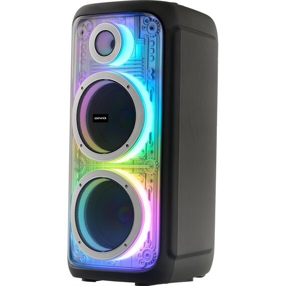 Акустическая система мощность 450 Вт с Bluetooth, FM радио, TWS, с функцией Караоке, Пиковая музыкальная мощность (PMPO) 450Вт, Выходная мощность (RMS) 100Вт, Материал корпуса пластик, Настраиваемая светодиодная подсветка с функцией отключения, Частотный диапазон: 40Hz-20KHz, Соотношение сигнал/шум: >70 дБ, T.H.D.:<0.3%, FM тюнер: 87,5 - 108МГц Размеры динамиков, НЧ динамик - 8" *2шт, твитер - 1", Bluetooth V5.3, Воспроизведение музыки с носителей памяти - USB, Вход USB, 2 входа для микрофона, 1 вход для гитары, AUX, вход для TF карты, Регулировка громкости микрофона, уровня эхо, функция регулировки эквалайзера, Функция TWS, Светодиодный дисплей, Пульт ДУ, Встроенная аккумуляторная батарея 12.8В, 5000 мAч, Блок питания 15В/2А, Размеры изделия, 31,5*32,5*72 см, Вес: 7,6 кг