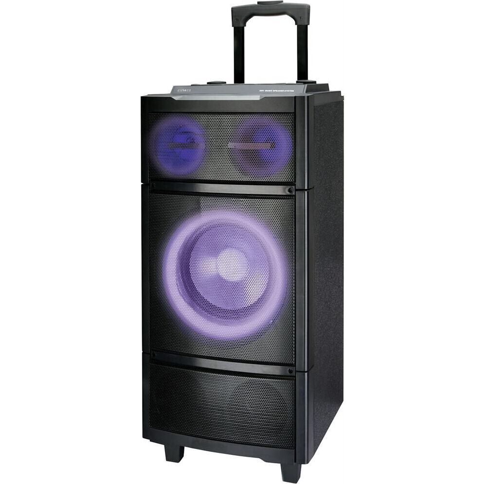 Акустическая система с Bluetooth, FM радио, и TWS. Выходная мощность (RMS), 80Вт, Пиковая музыкальная мощность: 800Вт, Частотный диапазон:40ГЦ-20кГЦ, Диапазон частот FM тюнера: 87.5 - 108 МГц, Многоцветная LED подсветка, 7 цветовых схемы, Панель с дополнительными звуковыми эффектами, Размеры динамиков, низкочастотный динамик - 254мм, среднечастотный динамик-76мм, твитер -76мм, Беспроводная передача сигнала по Bluetooth Воспроизведение музыки с носителей памяти - USB, Вход: для микрофона, USB, AUX, Функция регулировки эквалайзера, Функция TWS, Встроенная аккумуляторная батарея 12V 4500 мA Корпус: МДФ + ABS пластик, Пульт управления, Размеры изделия:310*320*675 мм Вес:11.5 кг