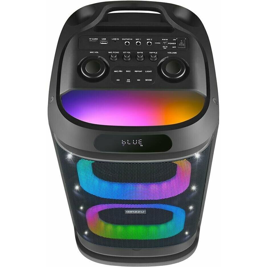 Модель RONDO. ДИНАМИКИ: НЧ/СЧ - 2 х 8 дюймов, ВЧ - 1 х 1 дюйм. Регулировка высоких и низких частот. КАРАОКЕ функция - два микрофона. Аудио вход для электрогитары. ДИНАМИЧЕСКАЯ RGB подсветка динамиков. ЭКВАЛАЙЗЕР: POP, ROCK, JAZZ, CLASSIC, FLAT. Аккумулятор 12V /4500 мАч. FM РАДИО: 87,5-108,0 МГц. АУДИО-ПЛЕЕР: USB-flash и микро SD-card. AUX: DC-jack 3,5 мм. Пульт дистанционного управления. Диапазон воспроизводимых частот - 40 Hz - 20 kHz.