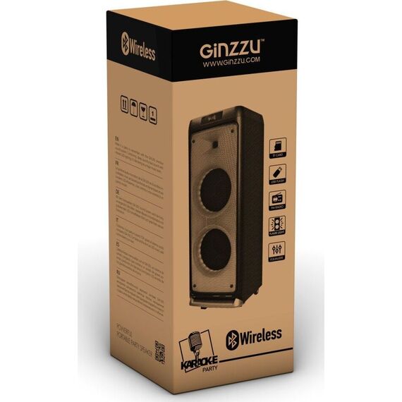 MIDI-система, Bluetooth, выходная мощность (RMS) - 120Вт., динамики НЧ/СЧ - 2 х 8 дюймов, ВЧ - 1 х 2 дюйма, МEGABASS - функция увеличения низких частот., КАРАОКЕ функция - два микрофона. ДИНАМИЧЕСКАЯ RGB подсветка динамиков - 7 режимов.ЭКВАЛАЙЗЕР.Аккумулятор 12V /7500 мАч и питание от сети 220V. Bluetooth: V4.2.Поддержка режима TWS.Функция POWERBANK (USB - 5V). FM РАДИО: 87,5-108,0 МГц.АУДИО-ПЛЕЕР: USB-flash и микро SD-card. AUX: DC-jack 3,5 мм.Пульт дистанционного управления.Диапазон воспроизводимых частот - 50 Hz - 18 kHz.
