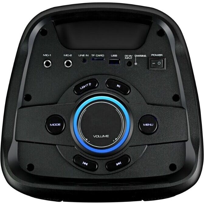 Выходная мощность (RMS) - 52Вт. ДИНАМИКИ: НЧ/СЧ - 2 х 6,5 дюймов, ВЧ - 1 х 2 дюйма. КАРАОКЕ функция - два микрофона. ДИНАМИЧЕСКАЯ RGB подсветка динамиков - 3 режима. ЭКВАЛАЙЗЕР: POP, ROCK, JAZZ, CLASSIC, FLAT. Аккумулятор 7,4V /3600 мАч и адаптер в комплекте. Bluetooth: V5.0. FM РАДИО: 87,5-108,0 МГц. АУДИО-ПЛЕЕР: USB-flash и микро SD-card. AUX: DC-jack 3,5 мм. Пульт дистанционного управления. Диапазон воспроизводимых частот - 60 Hz - 18 kHz.