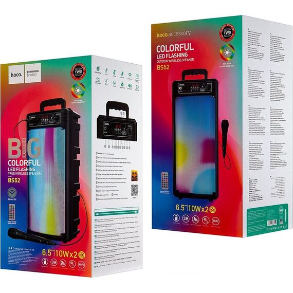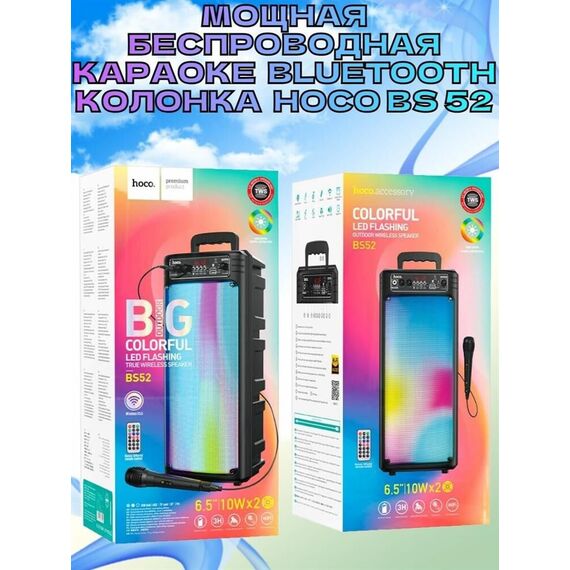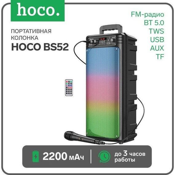 Колонка Bluetooth 5.0 2*10W 2200mAh с проводным микрофоном Hoco BS52