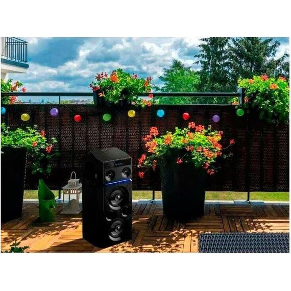 Cуммарная мощность 300 Вт (RMS). ЖК-дисплей есть. Поддерживаемые аудио форматы MP3. Эквалайзер есть. Радио. Тюнер FM есть. Разъем USB есть. Количество разъемов USB 2. Разъем подключения наушников 3.5мм. Микрофонный вход есть. Разъем AUX есть. Караоке есть. Поддержка iPod. Поддержка Bluetooth. Пульт ДУ в комплекте. Потребляемая мощность 51 Вт. Цвет черный Материал основного блока MDF/пластик Материал колонок MDF/пластик. Размеры (основной блок) 265 х 606 х 272 мм.. Вес (общий) 8 кг.