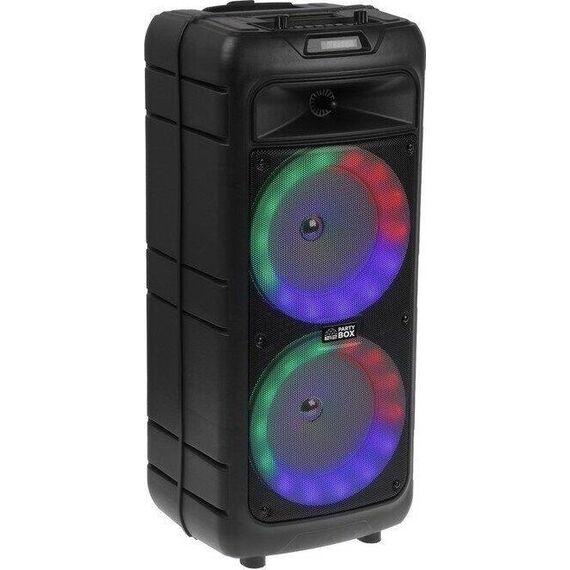 Слушать любимую музыку и устраивать вечеринки теперь просто! С портативным музыкальным центром B52 Party Box. Это современная многофункциональная система с поддержкой Bluetooth, радио и функцией караоке (микрофон в комплекте). Легко управляется пультом ДУ. Для настроения - светодиодная подсветка, которую можно настроить по своему настроению. Музыкальный центр удобно брать с собой: на дачу, на пляж, в гости и на отдых на природе! Он оборудован удобной ручкой и колесиками для транспортировки. А встроенная аккумуляторная батарея, позволяет наслаждаться музыкой до 3 часов без заряда.