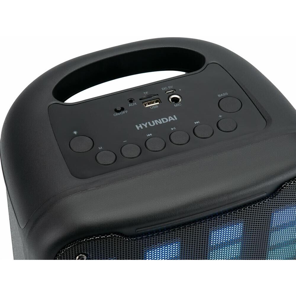 Бренд HYUNDAI Модель H-MC1204 Cуммарная мощность 10 Вт (RMS) Пиковая музыкальная выходная мощность (PMPO) 25 Вт Количество динамиков 1 Размер динамиков 8 " Радио Тюнер FM есть Частота FM диапазона от 87.5 до 108 МГц Разъемы, интерфейсы Разъем USB есть Количество разъемов USB 1 Поддержка карт памяти micro SD Микрофонный вход есть Разъем AUX есть Особенности Караоке есть Поддержка Bluetooth поддерживается Профили Bluetooth A2DP Микрофон в комплекте Дополнительно в комплекте USB кабель, AUX кабель, инструкция Функция true Wireless Stereo ДА Подсветка ДА Энергопотребление Время работы от встроенной батареи 7 ч Встроенная аккумуляторная батарея 1500 mAh Размеры, цвет, вес Цвет черный Размеры (основной блок) 240 х 360 х 197 мм Вес (общий) 1.2 кг Упаковка Габариты упаковки (ед) ДхШхВ 0.24x0.2x0.4 м Вес упаковки (ед) 2.73 кг Комплектация Микрофон, USB кабель, AUX кабель, инструкция