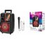 Спикер: 8 дюймов 2Ом 15W. Аккумулятор: 1800mAh, класс A, 18650. BT спецификация: BT V5.0 Zhongke Blue Flood. Функции: поддержка BT проигрывания / BT TWS соединения, FM, USB, AUX режимов проигрывания, вход для проводного микрофона. Поддержка переключения подсветки. Зарядное напряжение: DC 5V, время зарядки около 2.5 часов. В режиме музыки: около 3 часов (при громкости 80%). Размеры: 592*510*388 мм. Вес: 1.9 кг.