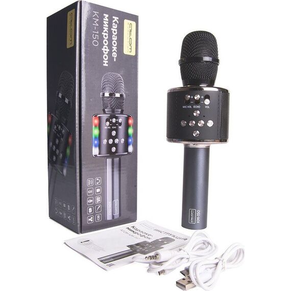 Караоке-микрофон ATOMevolution КМ-150 выполнен преимущественно из металла. Он легко подключается к смартфону с помощью Bluetooth версии 5.0. Требуемое расстояние до подключаемого устройства до - 10м. Ёмкий литиевый аккумулятор на 1200 мАч позволяет держать заряд до 6 часов. Также на устройстве доступны функции TWS, режим селфи и запись. Мощность: 5Вт Bluetooth: версия 5.0 расстоянии до 10м Частотный диапазон: 100Гц-20кГц Уровень максимального звукового давления: более 115Дб 1кГц Коэффициент нелинейных искажений: менее 1% Источник питания: съемный литиевый аккумулятор Емкость аккумулятора: 1200мА/ч Напряжение питания: 5В Время работы: до 6 часов Среднее время заряда АКБ: до 4 часов