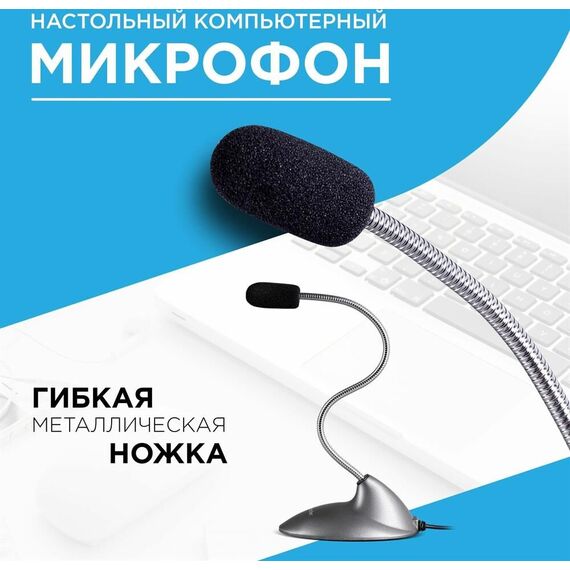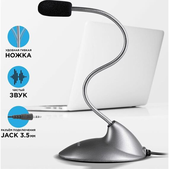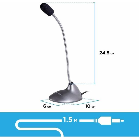 Микрофон компьютерный, Частотный диапазон 20–13000 Гц Чувствительность 54 дБ, Импеданс 2,2 кОм, Разъемы 3,5-мм джек, материал корпуска - пластик, длина кабеля - 1,5 м.