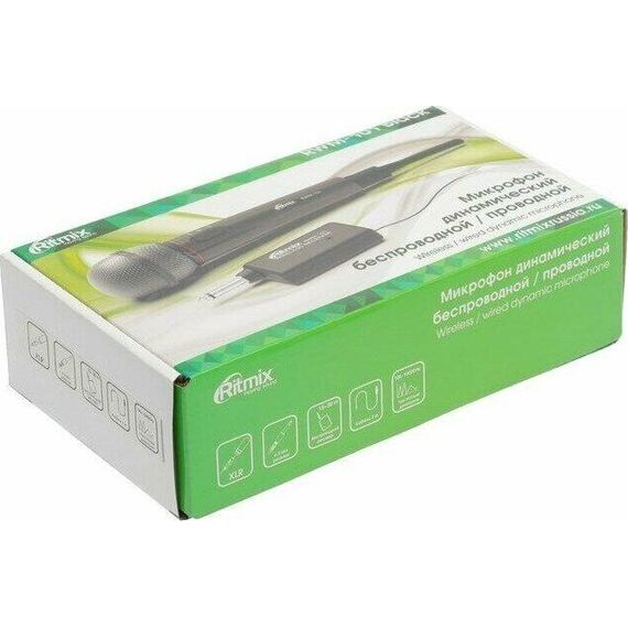 Динамический микрофон, способ передачи: беспроводной/проводной, диапазон несущих частот 100 - 100 МГц / 87,5 - 92 МГц , стабильность частоты ± 0,005%, мощность передатчика 8-9 мВт, чувствительность микрофона -72 дБ, съёмный шнур, выходы - радио, штекер 6,3 мм, радиус действия - до 15 м .