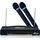 Беспроводная система VHF 87,5 - 92 МГц с двумя микрофонами. Каналы: 2, мощность передатчика: 4 мВт, потребляемая мощность: 3 Вт, диапазон: 50 - 16 000 Гц, сопротивление микрофона: 600 Ом, чувствительность: 60 дБ, микрофон - DC 9 В, 6 ч, до 30 м.