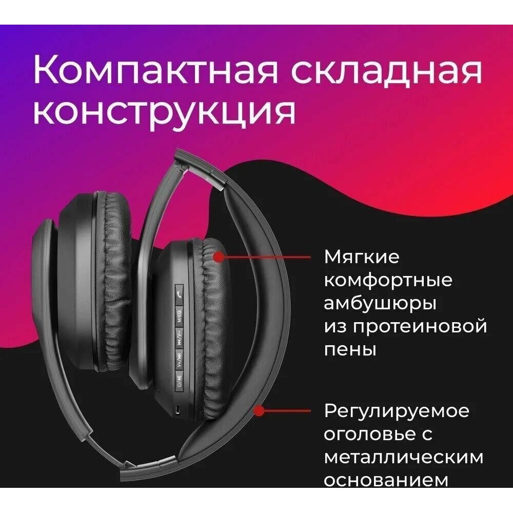 Гарнитура беспроводная, Bluetooth, чувствительность (наушники) - 115 дБ, чувствительность (микрофон) -42 дБ, частотный диапазон (наушники) - 20–20000 Гц, частотный диапазон (микрофон) - 100–16000 Гц, емкость аккумулятора - 200 мА·ч, время работы в режиме разговора / прослушивания музыки - 10 час, разъемы Micro-USB для зарядки батареи, встроенный микрофон, слот для карты MicroSD, встроенный FM-приемник, клавиши управления на наушниках, регулируемое оголовье, складная конструкция, радиус действия - 10 м.