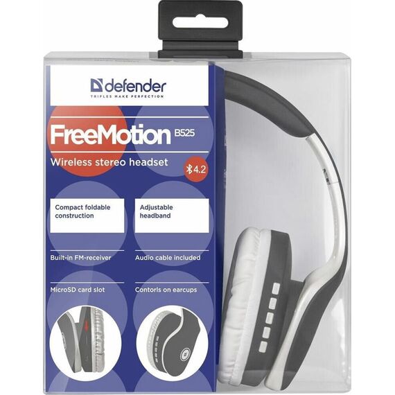 Наушники DEFENDER FREEMOTION B525 серый/белый