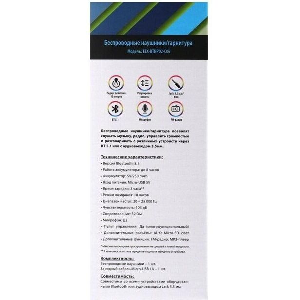 • Светящиеся ушки LED - кошачьи ушки • Версия Bluetooth: 5.3 • Работа аккумулятора: до 8 часов • Аккумулятор: 5V/250 mAh • Вход питания: Micro-USB 5V • Время зарядки: 2 часа • Режим ожидания: 18 часов • Диапазон частот: 20 – 25 000 Гц • Чувствительность: 103 дБ • Сопротивление: 32 Ом • Микрофон: Да • Пульт управления: Да (многофункциональный) • Дополнительные разъёмы: AUX; Micro-SD слот • Дополнительные функции: FM радио; MP3 плеер