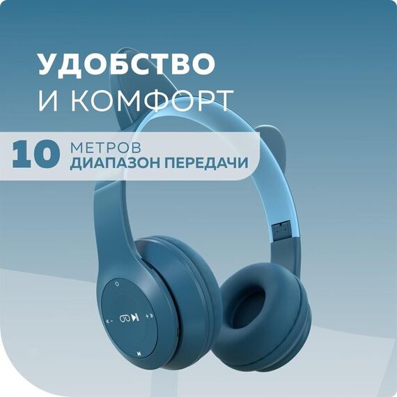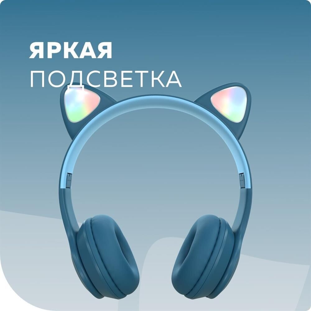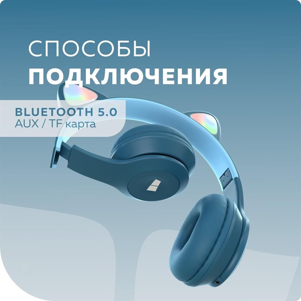 Bluetooth-наушники накладные 5.0 200mAh More choice HW24kids Производитель More choice; Совместимость Android, iOS, MAC, Windows; Версия Bluetooth 5.0; Время работы в режиме bluetooth 6 ч; Время в режиме ожидания 14 ч; Время работы 6 ч; Дальность действия до 10 м; Регулятор громкости есть; Конструкция Накладные; Тип наушников Bluetooth-наушники; Частотный диапазон 50 - 20000 Гц; Чувствительность 85 дБ; Импеданс 32 Ом; Материал корпуса ABS-пластик, искусственная кожа; Разъем miniJack 3.5 мм, TF карта, Micro USB; Микрофон есть; Страна бренда Россия; Страна производитель Китай; Комплектация Наушники, кабель для зарядки, аудиокабель AUX, буклет, Led-кольцо, инструкция; Цвет темно-синий