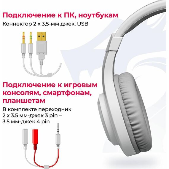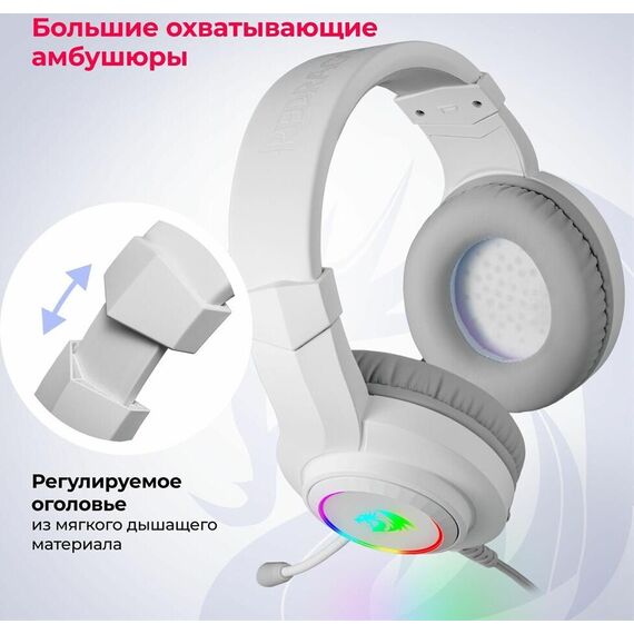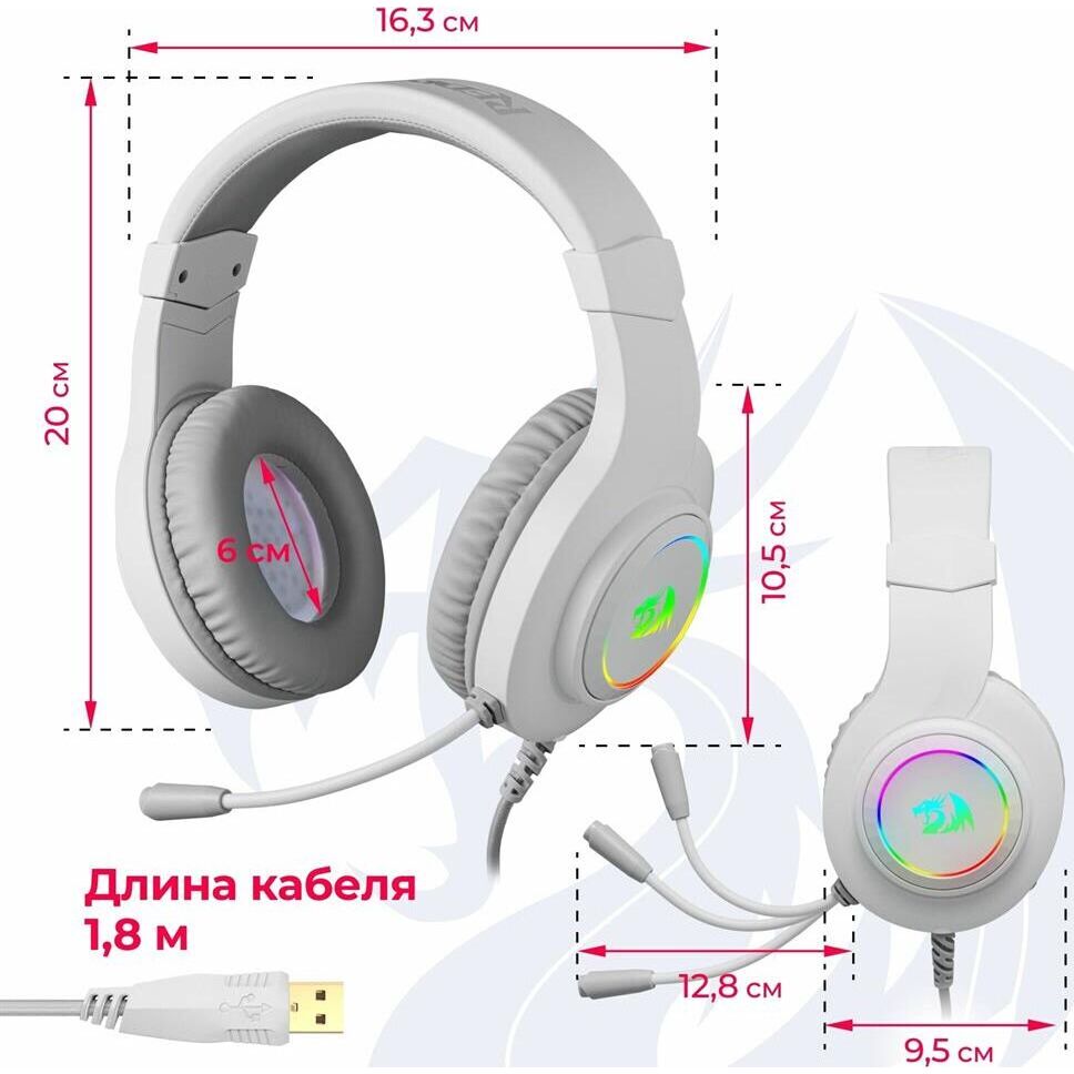 Игровая гарнитура REDRAGON (70840) Hylas Белые, RGB, 3.5 Jack