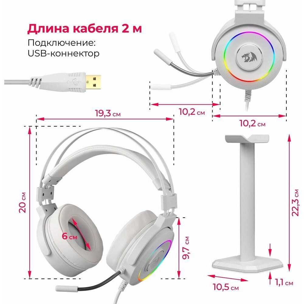 Игровая гарнитура REDRAGON (77885) Lamia 2 Белые, RGB, звук 7.1, USB