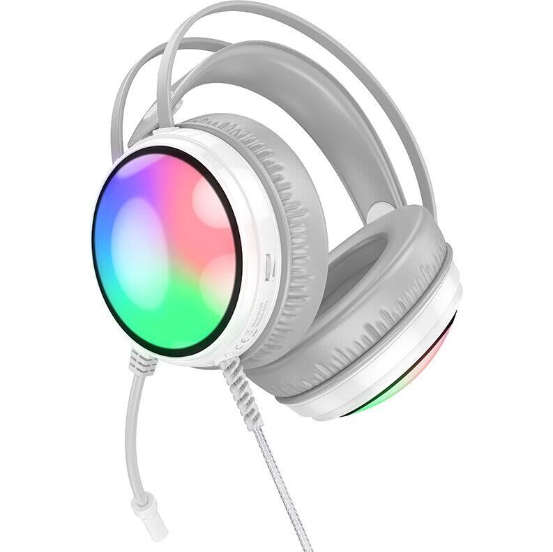 Игровые наушники Borofone BO108 это стильная гарнитура с объемным звуком, мягкими охватывающими амбушюрами и яркой светодиодной подсветкой. Подойдут для использования не только с компьютером, но и с аудио, видео техникой, телефоном, ноутбуком. Имеют большие динамики 50 мм с отличным качеством звука. Благодаря гибкому микрофону вы сможете принять активное участие в голосовых чатах. Пульт управления расположен на чашке: регулируйте громкость звучания, не тратя время на поиск соответствующих кнопок и регуляторов. RGB-подсветка наушников Borofone BO108 позволят геймерам погрузиться в мир любимых видеоигр. Длина кабеля 2 м дает возможность комфортно расположиться у экрана. Выполнены в двух цветах