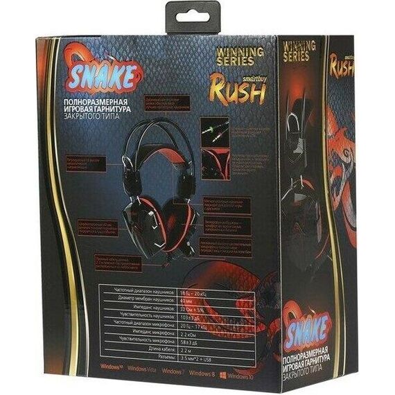 Наушники с гарнитурой SMARTBUY (SBHG-1300) RUSH SNAKE черно-красный
